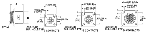 Square Flange Mounted Receptacles Dimensions