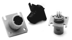 All square flange receptacles are available in 7,12 or 24 contacts in gray or black. Both POSI-LOK and V-LOK latching styles are offered.